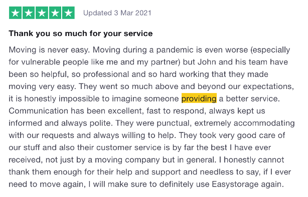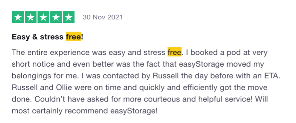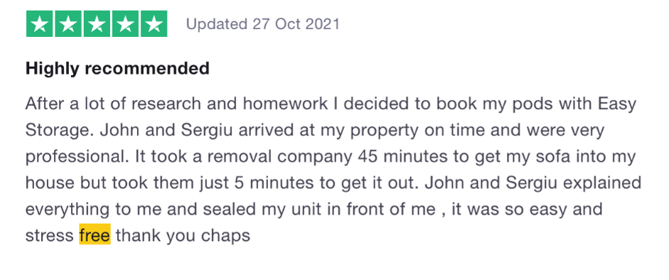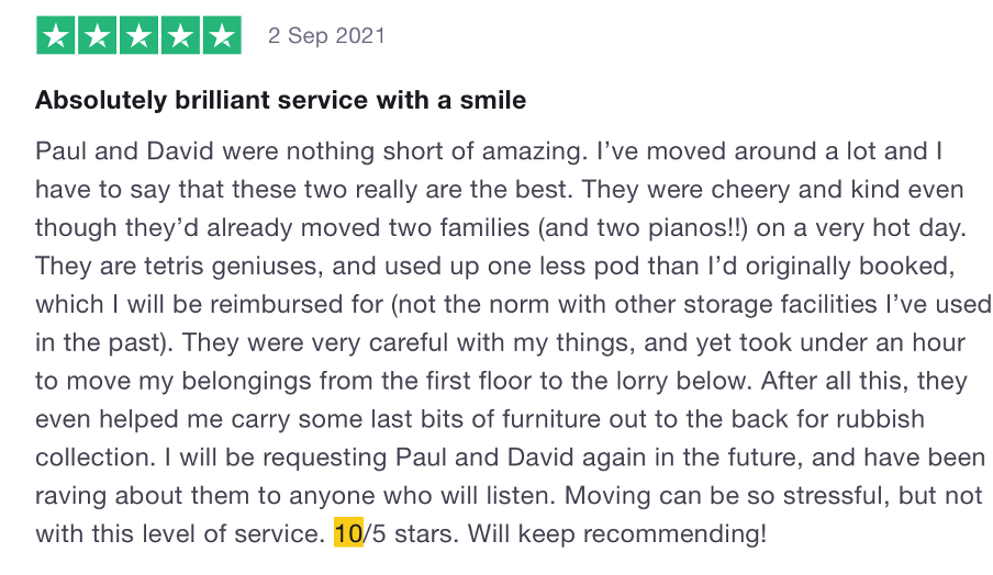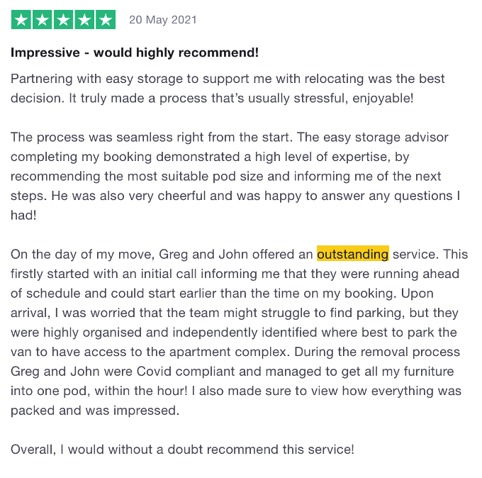 We couldn’t choose just one review here! There were such glowing reviews with so many loaders mentioned, it wouldn’t have been fair to single one out. Our staff all have the best training so they become the ultimate Tetris experts. We know that storage and moving can be super stressful so we do absolutely everything for you. We were glad to help these three lovely customers this year and ensure their experience was easy! (We’re part of the easyGroup for that reason exactly!)